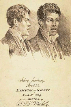Jenkins actions at trial and his consequential hanging are “the thing of legends”. His actions however also opened up public debate into the “freedoms of convicts”. The following article published November 13, 1834 in The Sydney Herald [2] recounts Jenkin’s and Tattersdale’s hanging and hints at Jenkin’s “devil may care” attitude to what he had done.