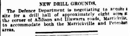 100 years ago, In the News, Marrickville, military historyIn the News 100 Years Ago Today: Addison Road Army Barrack Site 2 July, 201314 September, 2017 tigtog The Sydney Morning Herald (NSW : 1842 – 1954), Tuesday 1 July 1913, page 12 Share this: Click to share on X (Opens in new window) X Click to share on Facebook (Opens in new window) Facebook Like Loading... Related