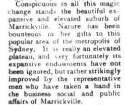 The Newsletter: An Australian Paper for Australian People (Saturday 15 August, 1914, page 4) spelt out in vivid details what we already know about the Marrickville district. It is just an amazing place to live!
