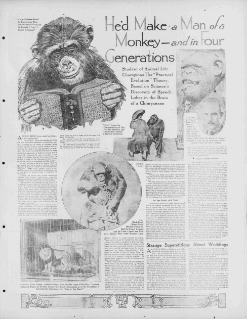 (Fig. 3. “He’d Make a Man of a Monkey – and in our Generations”, South Bend News-Times April 30, 1922, 39.)