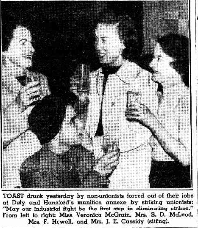 This war was between a group of working-class women, many of whom were conscripted factory workers, and Gwynneth Cassidy and nine other ‘volunteer workers’. Ostensibly this war was over compulsion to join a union but underlying this was the fight for a living wage and equal pay for women.