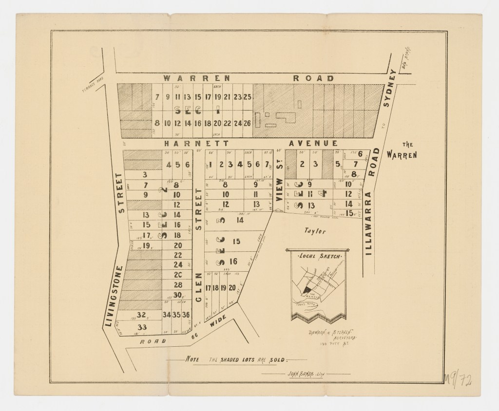 Laurence began to sell off his land in the early 1880s. The first sale took place in 1882 and there were subsequent sales in 1885, 1886, and 1887. Eventually the land where 50 and 52 Warren Road sit was sold to William Roach (Roach Street) who then subdivided and sold it on.
