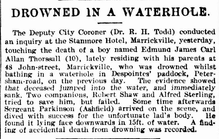 As late as February of 1925, Bishop brothers Norman (11) and Kerwin (7) of Garner’s Avenue drowned in the Standsure pit while fishing. In what was actually a common occurrence two people dived in to save them. They were council workers Richmond Jerrens and Archie Blamire (from the Blamire brickmaking family). Their heroic efforts were recognised when they received an award from the Royal Shipwreck Relief and Humane Society.