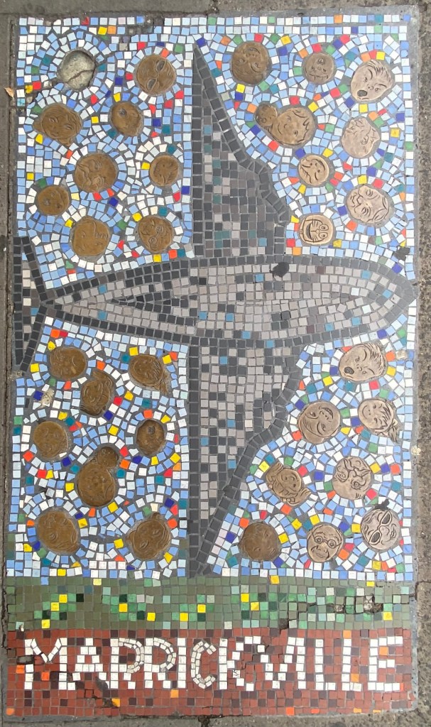 ‘Marrickville Aeroplane’ Mosaic by Keiko Tachibana and David Barrs, Marrickville Road. MHS has called for, and Inner West Council has supported, the preservation of 72 mosaics which were created by many community organisations in 1994.