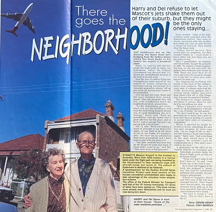 Demolition was also seen as the answer to aircraft noise generated by the new runway, which would affect Sydenham. It was thought easier and quicker to build the runway immediately and pay residents to move. The Badgery’s Creek proposal was kicked down the road for another 25 years.