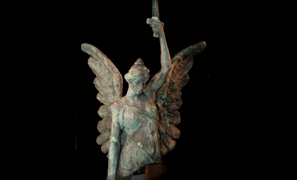 Mourning or Winged Victory, Marrickville’s guardian and MHS emblem, whose repair and retention were championed by the late Chrys Meader. The statue (Nike) is now in the Australian War Memorial, Canberra.