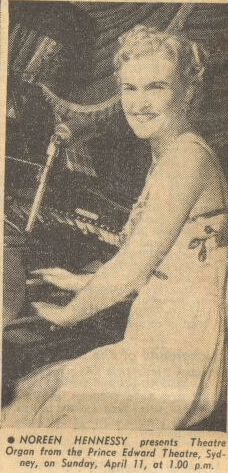 In 1944, Noreen Hennessy was employed by the theatre to carry out this role and for the next 19 years she made it her own. It has been reported that, all told, she played to an estimated 2.5 million people who often attended the theatre just to hear her play the Wurlitzer. These performances were also broadcast on the ABC, Radio Australia and the Macquarie network; a number of recordings still exist.
