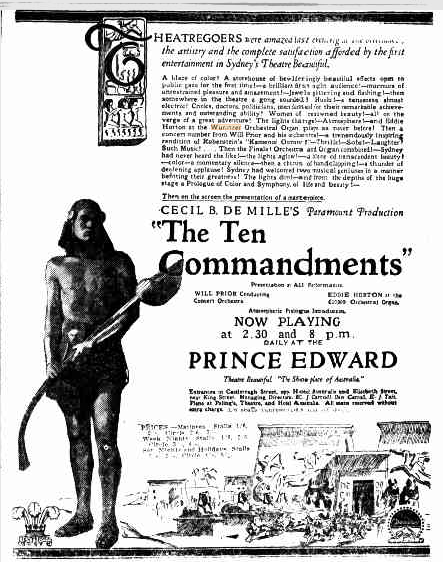 The opening night was a major event with a screening of the just-released Cecil B. de Mille epic ‘The Ten Commandments’. Sydney was the ninth city in the world to see this film. An orchestra within a ‘pit’ that could be raised and lowered, led by Will Prior who had led the orchestra at Grauman’s Metropolitan Theatre in Los Angeles, accompanied the film. This Grauman’s theatre is now demolished.