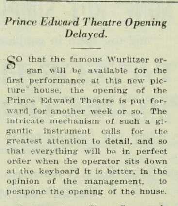 At a total cost £10,000 it was installed in the new Prince Edward Theatre on the corner of Castlereagh and Elizabeth streets. The installation was a difficult task and actually delayed the theatre’s opening until Saturday 22 November 1924.